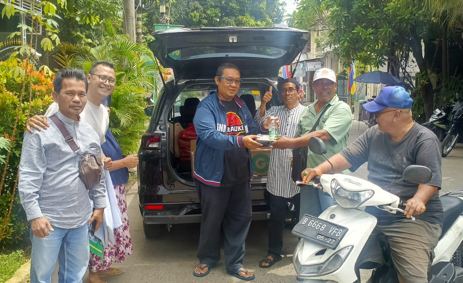 Begitu pula Bang Adi, tukang ojek pangkalan yang biasa standby di dalam Perumahan Ciledug Indah 2, ikut merasa kaget saat disambangi Tim PJBW. Dari puluhan mereka itu, malah ada yang menikmati langsung nasi boks, yakni sebagai pengganjal sarapan pagi.