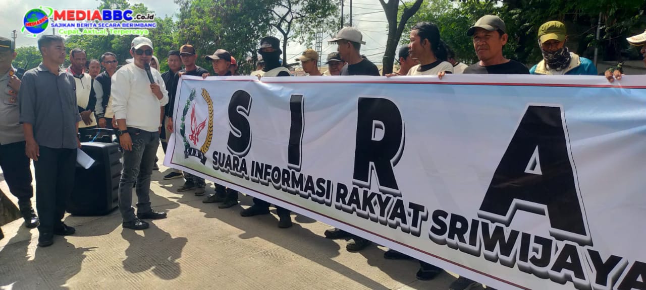 Puluhan massa dari Lembaga Suara Informasi Rakyat Sriwijaya (SIRA) mendatangi Kantor Kesyahbandaran dan Otoritas Pelabuhan (KSOP) Kelas I Palembang di Jalan Mayor Memet Sastra Wirya No.147, Lawang Kidul, Ilir Timur II, Selasa (14/10/2025).