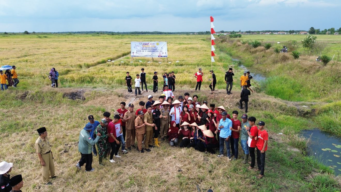 MEDIABBC.co.id – Banyuasin – Panen Padi bersama Bupati Banyuasin, Dr. H. Askolani, SH., MH dalam mendukung swasembada pangan nasional berlangsung di Desa Pulau Parang, Kecamatan Rambutan, Kabupaten Banyuasin, Senin (27/10/2025).