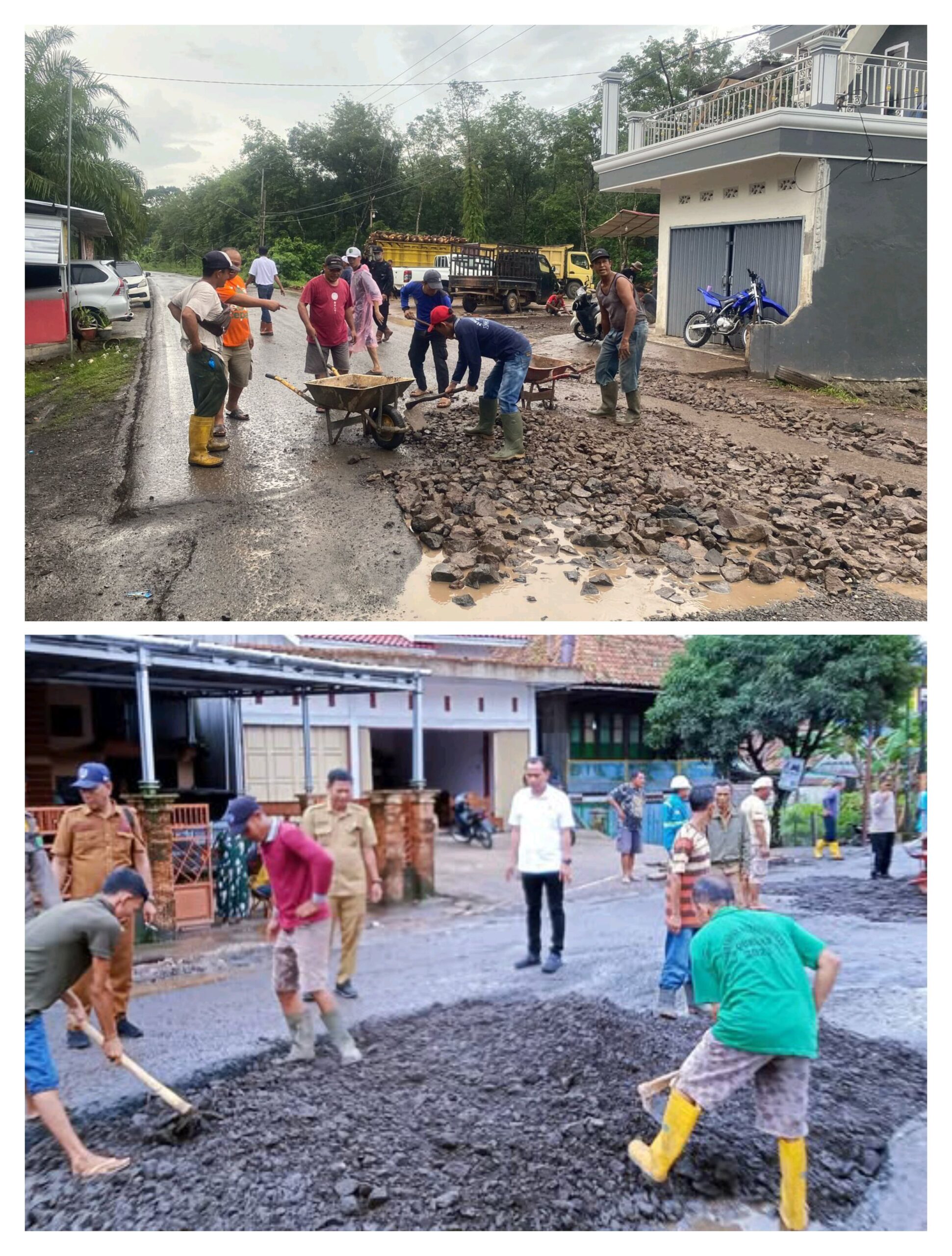 “Saya selaku kepala desa ,”menyampaikan apresiasi dan terima kasih kepada seluruh perangkat dan unsur pemerintahan kecamatan yang telah secara bersama-sama bergotong-royong memperbaiki jalan,” ujarnya.
