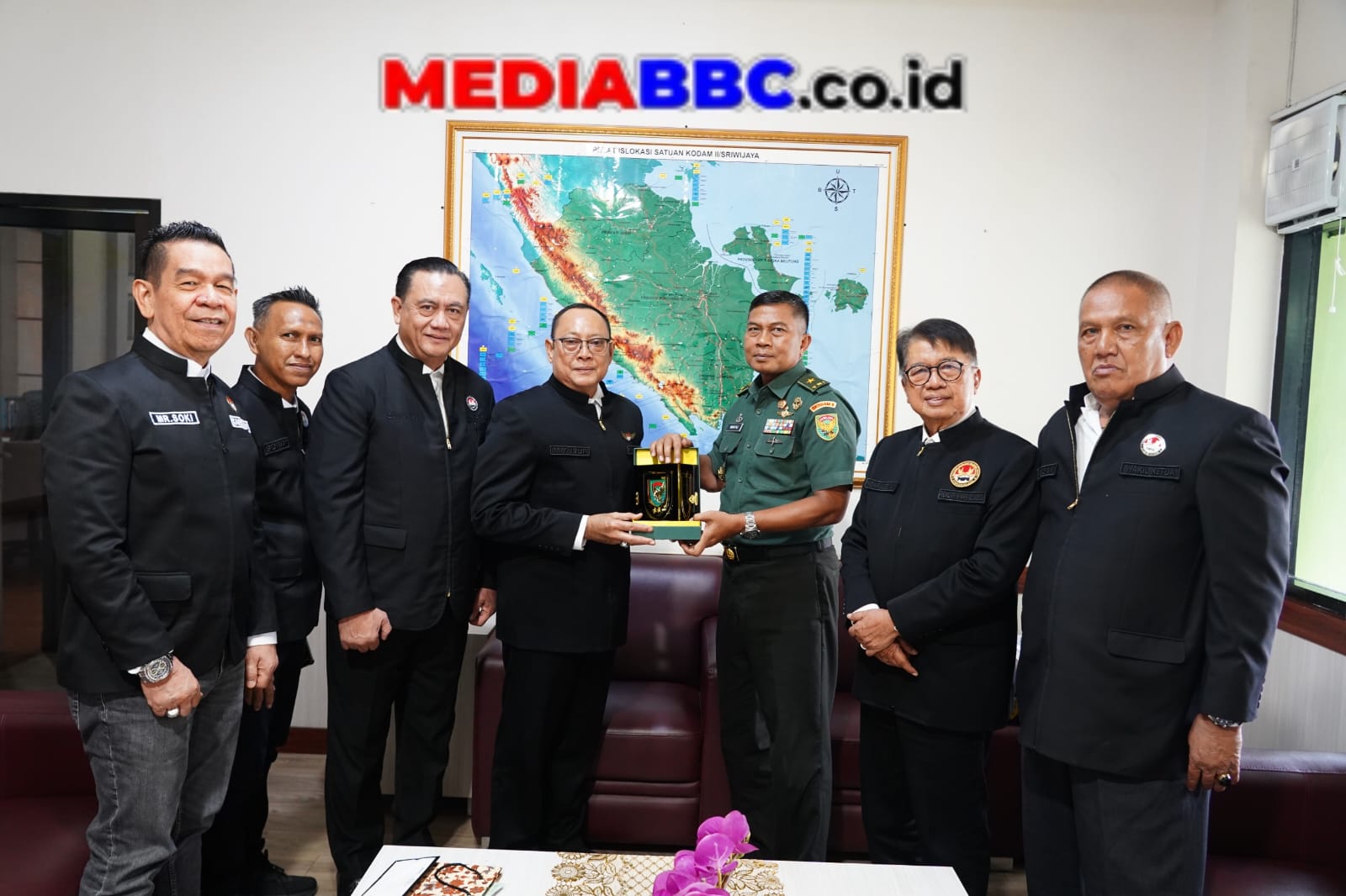 Rombongan dipimpin langsung Dewan Pendiri Syahrial Oesman, didampingi Ketua Umum M. Yusuf Malaya, Sekretaris Umum Sopan Sofian, Wakil Ketua Umum M. Rusli Halim, Koordinator Bidang Hukum Mr. Soki, serta Wakil Ketua Umum Ir. Zulkarnain. Dari pihak Kodam, Pangdam diwakili Kasdam II/SWJ Brigjen TNI Iwan Ma’ruf Zainudin bersama jajaran pejabat utama.