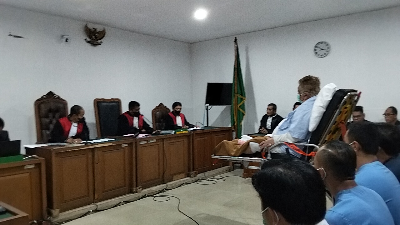 Tepat pukul 10.00 WIB, sebuah ambulans memasuki halaman Pengadilan Negeri (PN) Palembang. Terdakwa yang akrab disapa H.Alim tampak lemah saat petugas mengeluarkannya dari dalam kendaraan medis. Dengan pengawalan ketat tim kejaksaan serta tenaga kesehatan, ia langsung dibawa menuju ruang sidang.