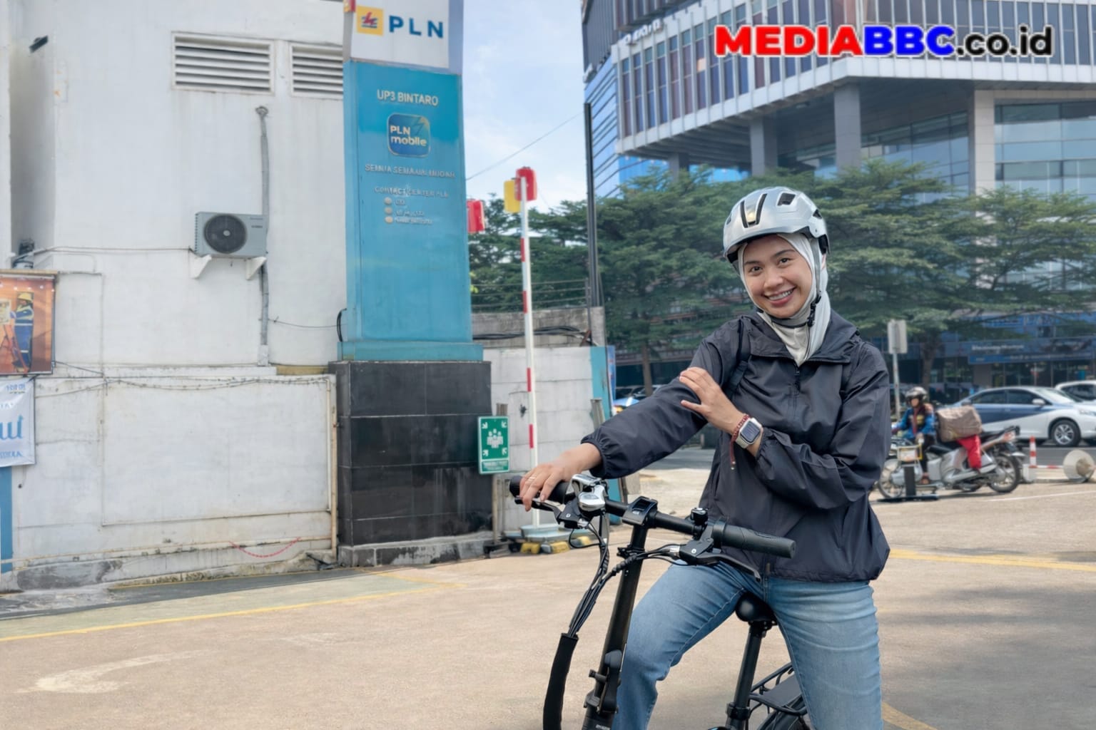 Salah seorang insan PLN menggunakan scooter listrik sebagai transportasi minim emisi untuk menuju kantornya di PLN UP3 Bintaro.