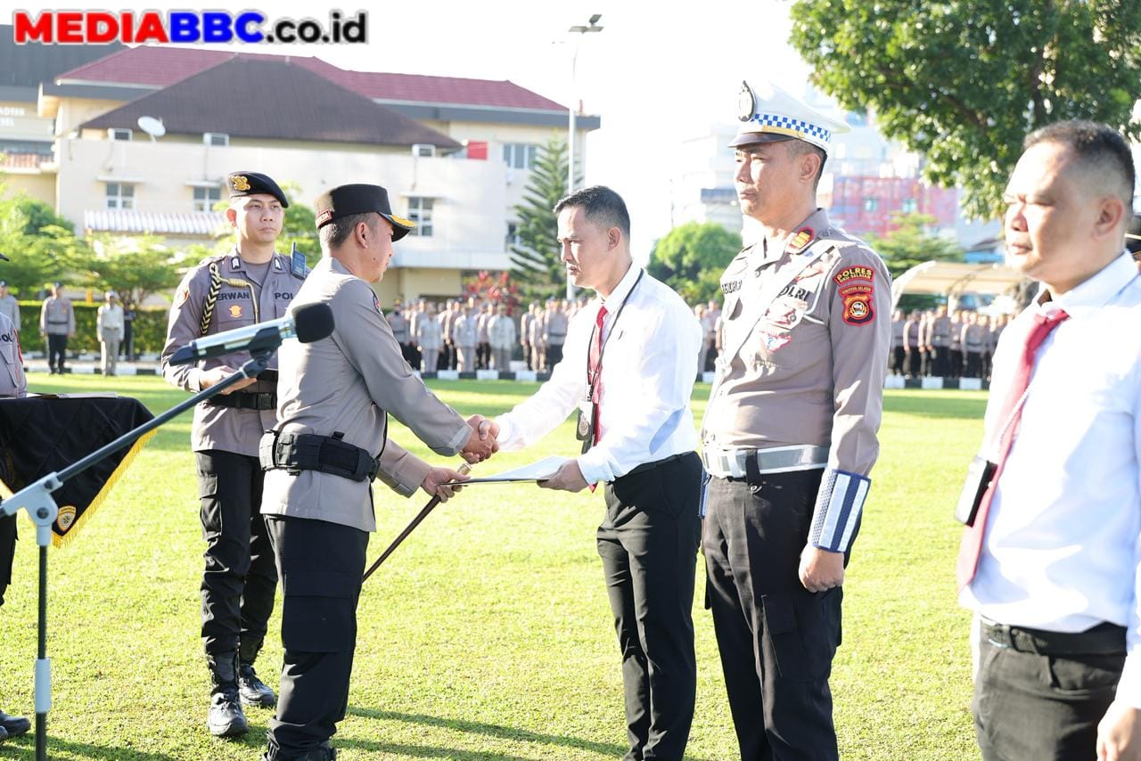 MEDIABBC.co.id, PALEMBANG — Kapolda Sumatera Selatan Irjen Pol Dr. Sandi Nugroho, S.I.K., S.H., M.Hum. memimpin Apel Pemberian Penghargaan kepada personel berprestasi di Lapangan Apel Mapolda Sumsel, Senin (13/4/2026) pukul 07.00 WIB. Sebanyak 48 personel dari berbagai satuan menerima penghargaan atas kinerja luar biasa di bidang penegakan hukum, pengabdian internasional, pelayanan kemanusiaan, hingga prestasi olahraga.