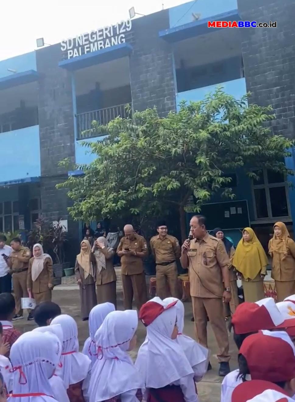 Mat Genti Kepala Sekolah SD Negeri 129 Palembang dalam kesempatan ini mengatakan bahwa, kami di SDN 129 Palembang ini melaksanakan kegiatan MPLS selama 3 hari dari tanggal 7-9 Juli 2025. Dan nanti di tanggal 14 SDN 129 ini akan menampilkan dan memperkenalkan ekskul yang kepada siswa-siswi baru seperti karate, drumband, tari, pramuka. Dan juga memperkenalkan lingkungan sekolah, sarana dan prasarana yang ada.