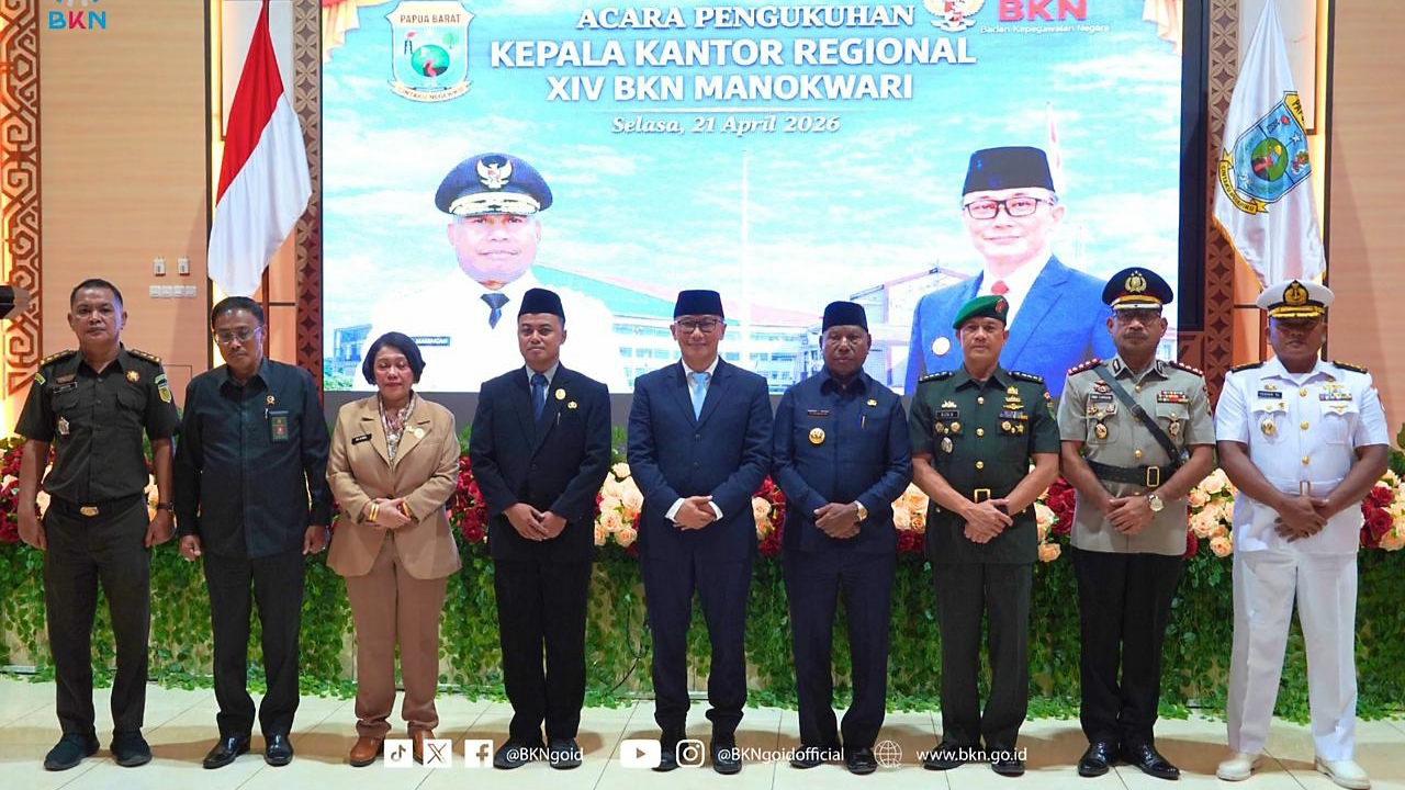 MEDIABBC.co.id – Manokwari – Humas BKN, Dalam pengukuhan Basuki Ari Wicaksono sebagai Kepala Kantor Regional XIV BKN Manokwari oleh Gubernur Papua Barat, Kepala BKN, Prof. Zudan, menyampaikan bahwa pengukuhan ini bukan sekadar pergantian jabatan, melainkan langkah konkret untuk memastikan pelayanan kepegawaian yang profesional, akuntabel, dan berbasis merit di wilayah Papua Barat dan Papua Barat Daya.