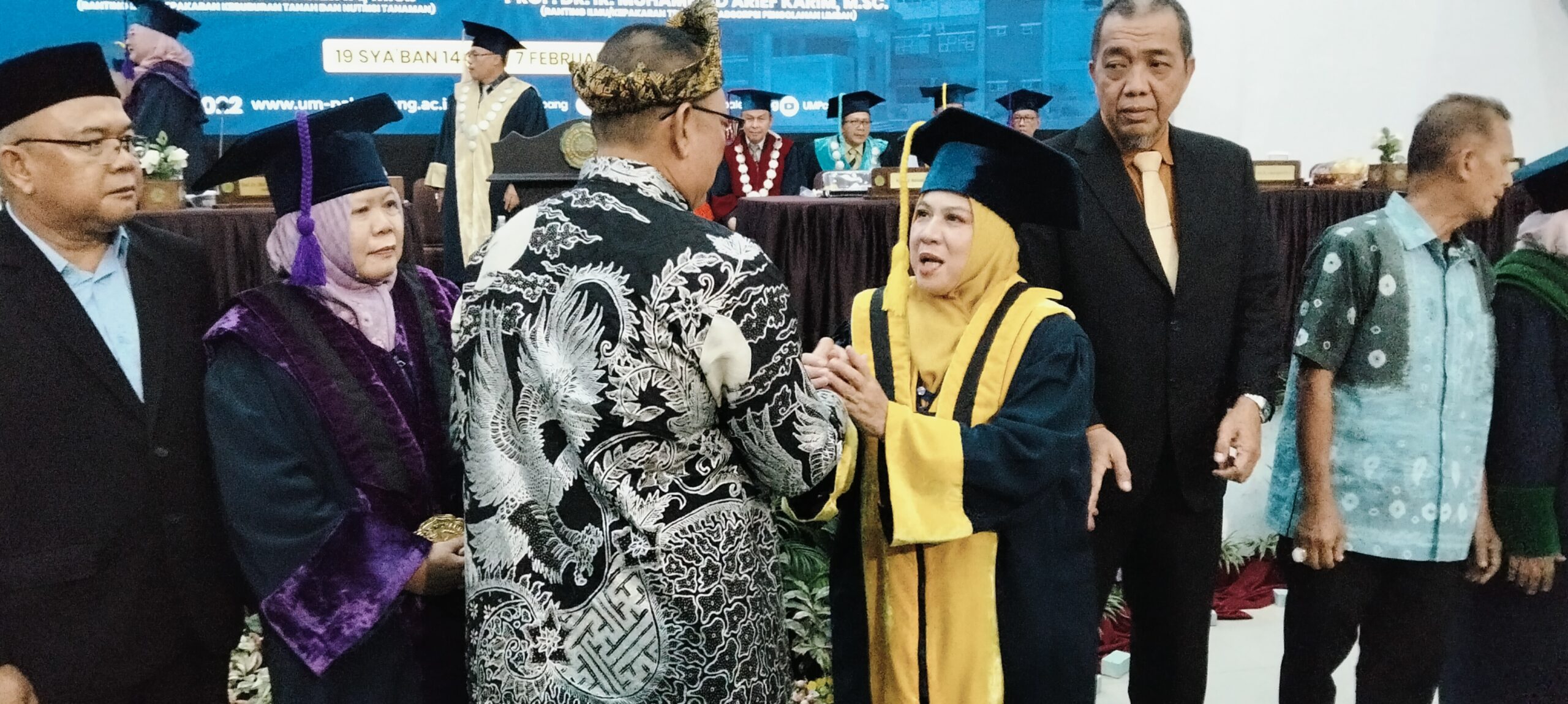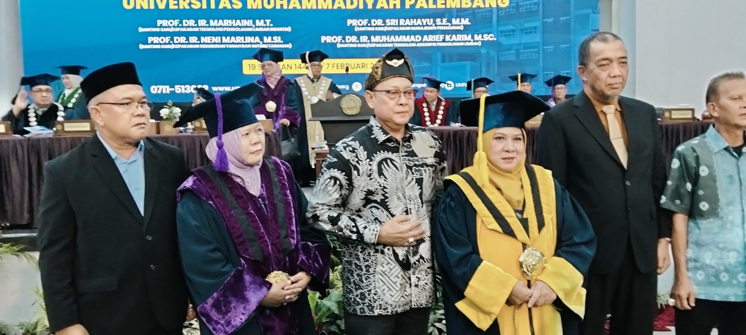 Yusuf menyampaikan apresiasi atas bertambahnya guru besar di lingkungan UMP, yang menurutnya menjadi indikator kemajuan dunia pendidikan di Sumatera Selatan.