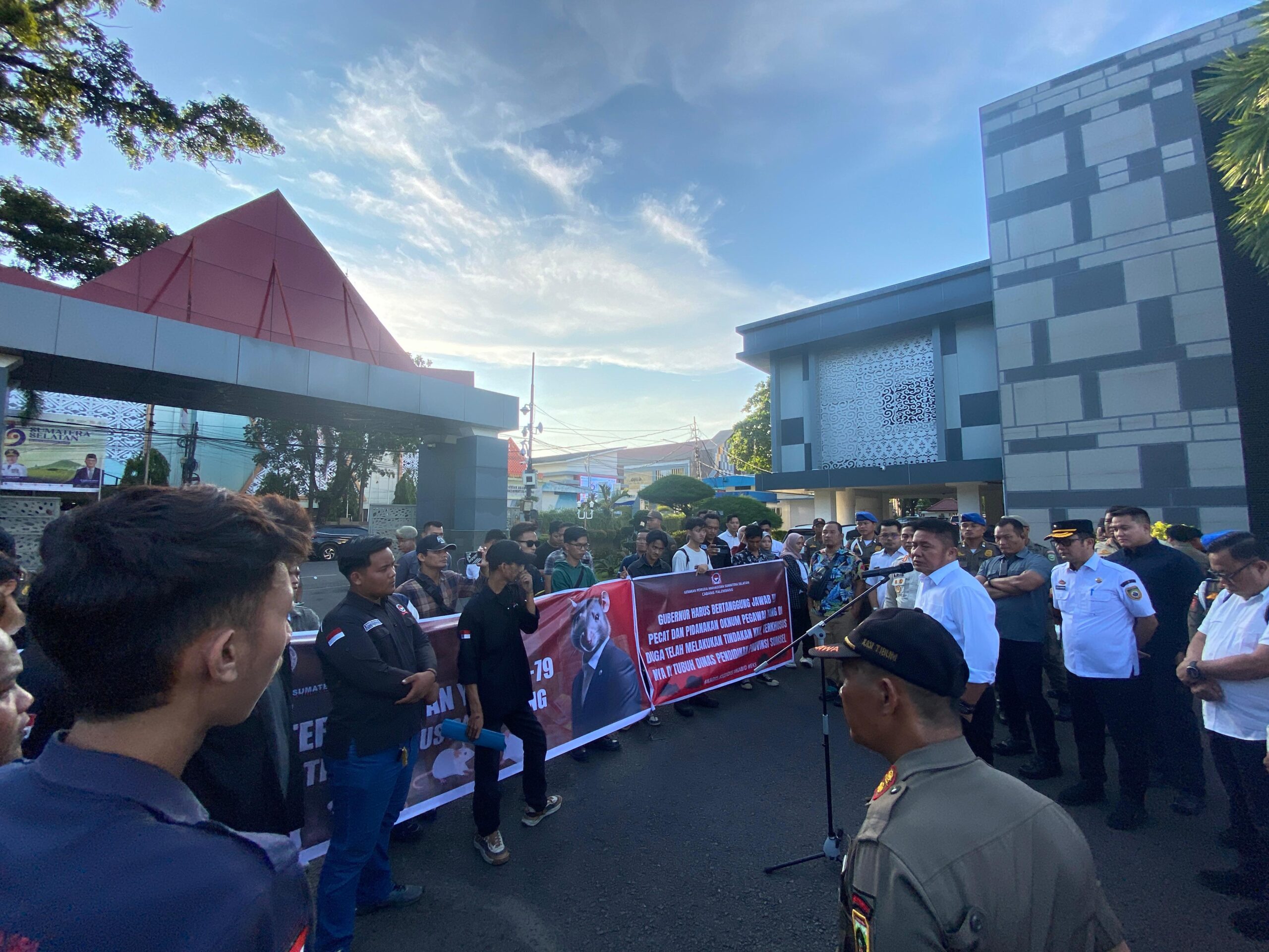 MediaBbc.co.id., Palembang- Gerakan Pemuda Mahasiswa Sumatera Selatan (GAASS) menggelar aksi damai di halaman Kantor Gubernur Sumatera Selatan, Rabu (21/5/2025), dengan membawa pesan kuat melawan korupsi birokrasi. Aksi ini diwarnai dengan pelepasan tikus secara simbolis, sebagai bentuk kritik terhadap dugaan praktik KKN (Korupsi, Kolusi, dan Nepotisme) di beberapa dinas pemerintahan provinsi.