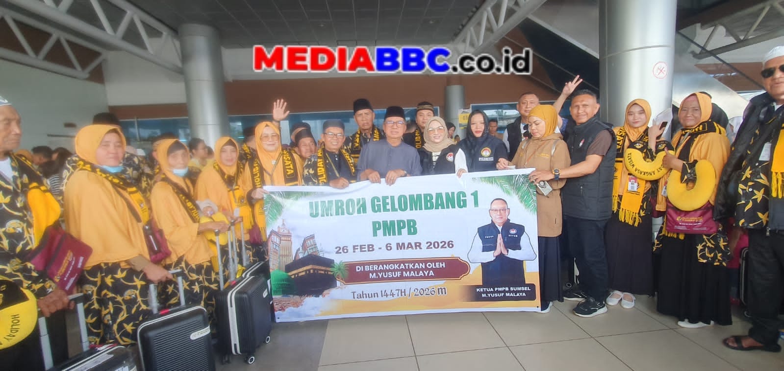 MEDIABBC.co.id, Palembang – Sebuah nazar yang awalnya hanya untuk 10 orang, berubah menjadi keberangkatan 64 orang ke Tanah Suci. Itulah yang terjadi di tubuh Paguyuban Masyarakat Palembang Bersatu (PMPB), ketika program umroh internal organisasi itu resmi diberangkatkan dari Bandara Sultan Muhammad Badaruddin II, Kamis (26/2/2026).