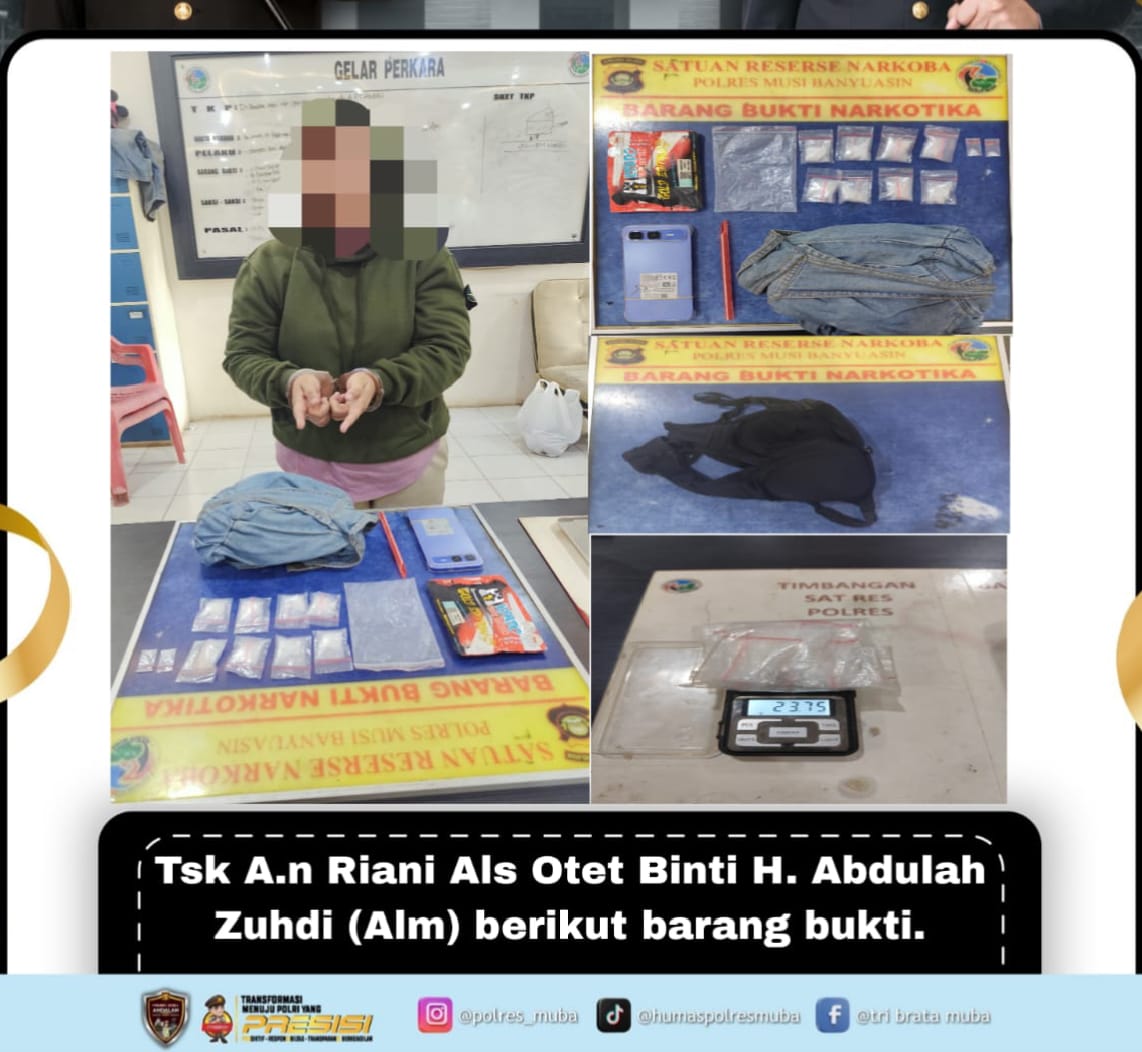 “Tersangka atas nama Riani alias Otet (40), warga Desa Tanjung Kerang, diamankan di dalam rumahnya. Dari hasil penggeledahan ditemukan 10 paket diduga narkotika jenis sabu dengan berat bruto 23,75 gram,” ujar AKP Hutahaean, Minggu (22/2/2026) saat dikonfirmasi.