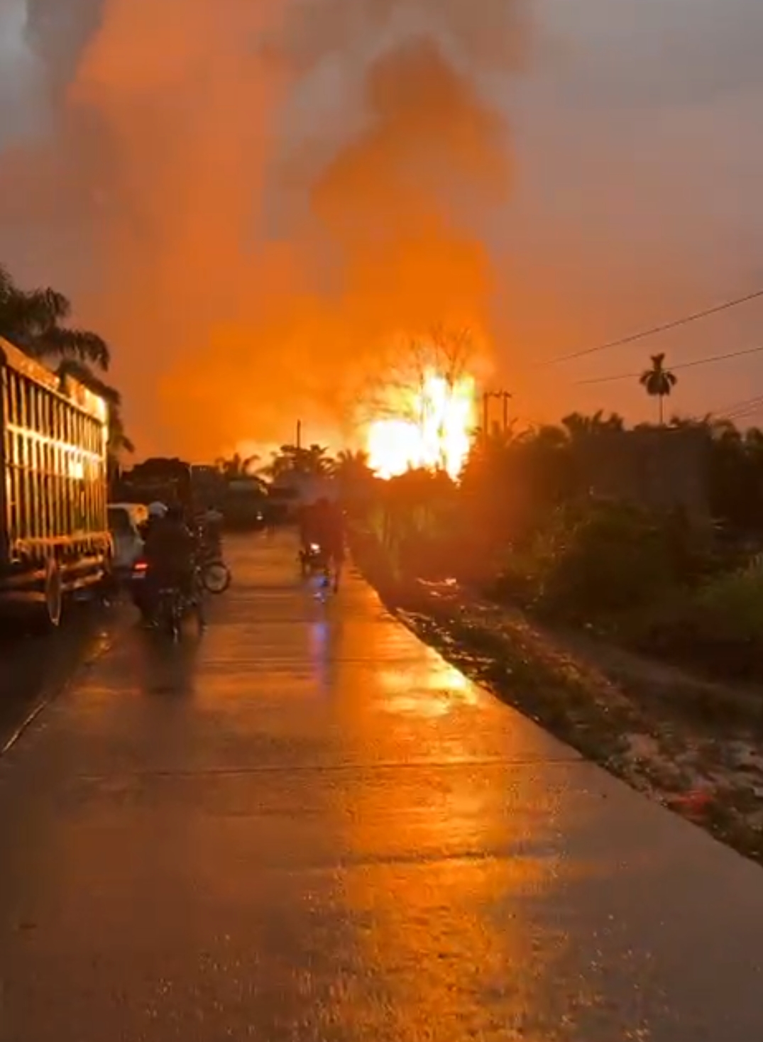 Proses Shutdown: terpantau di lapangan sampai jam 22 Malam Pihak pengelola sedang berupaya memutus aliran gas guna mencegah kebakaran meluas.