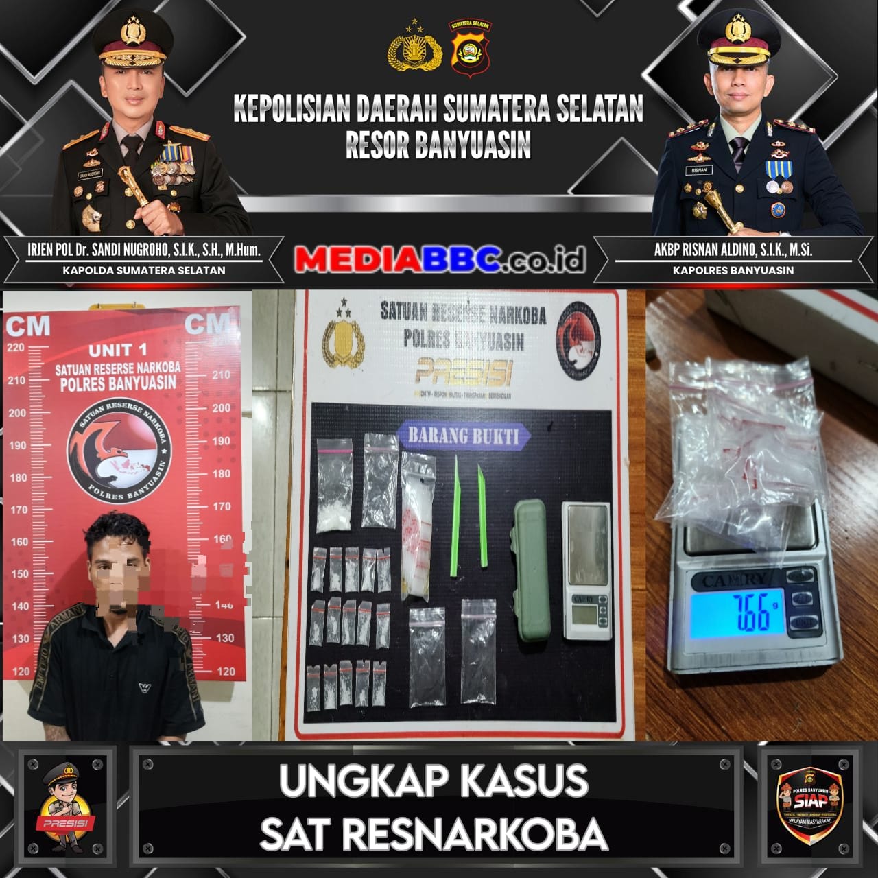 MEDIABBC.co.id, BANYUASIN — Polda Sumatera Selatan melalui Satresnarkoba Polres Banyuasin kembali menunjukkan respons cepat dalam memberantas peredaran narkotika dengan mengungkap kasus pengedar sabu di wilayah Kecamatan Betung.