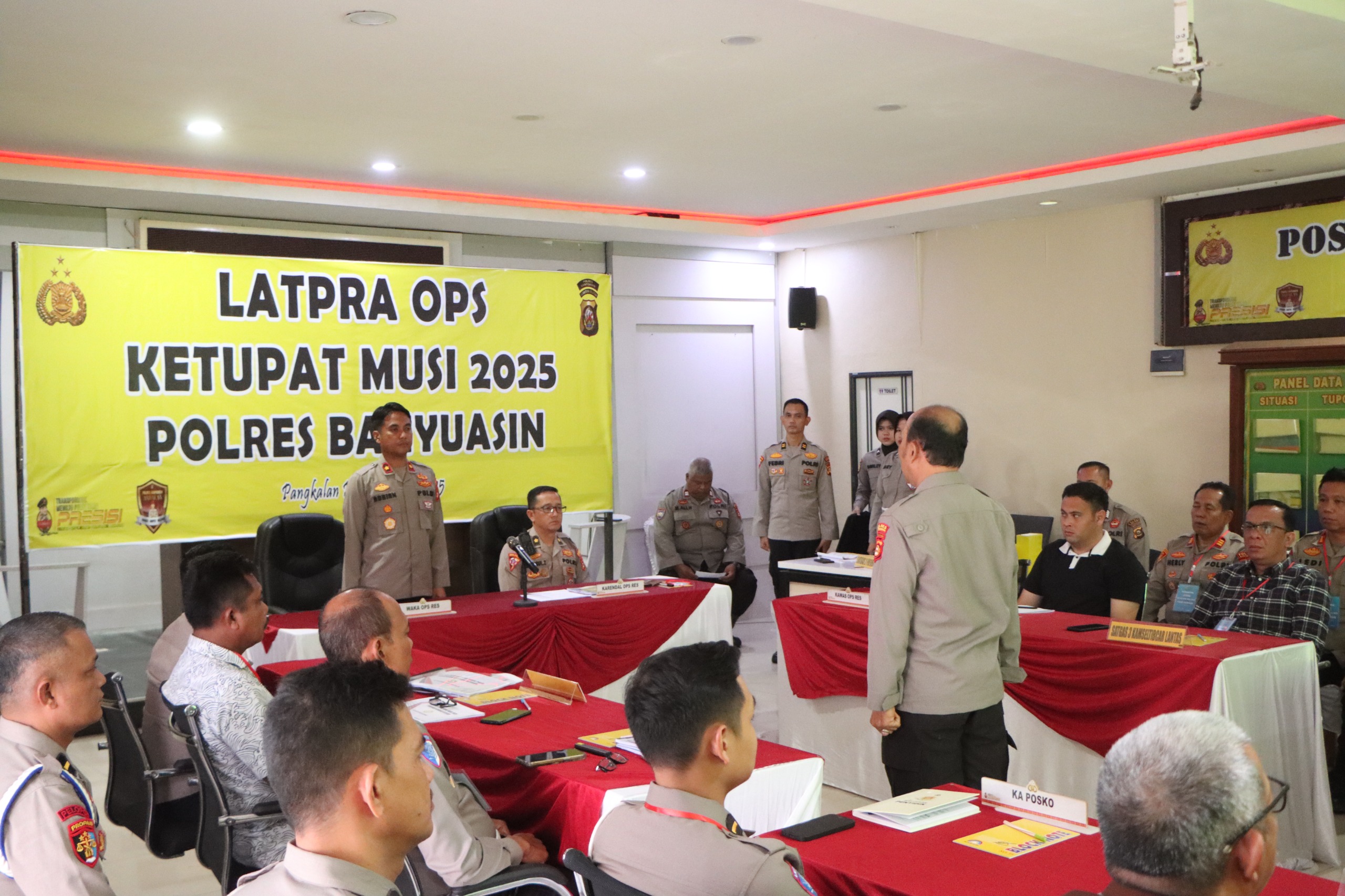 MEDIABBC.co.id – BANYUASIN | Wakapolres Banyuasin, Kompol Adriansyah SE SIK, mewakili Kapolres Banyuasin AKBP Ruri Prastowo SH SIK MIK, memimpin langsung Latihan Pra-Operasi (Latpra) Ketupat Musi 2025 di Ruang ICC Mapolres Banyuasin, Rabu (19/3/25).