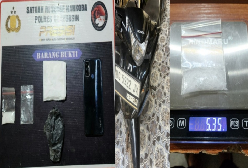 MEDIABBC.co.id – Banyuasin – Jajaran Satuan Reserse Narkoba (Satresnarkoba) Polres Banyuasin kembali mengungkap kasus tindak pidana narkotika. Seorang pria berinisial ESS (47) , warga Desa Meranti, Kecamatan Suak Tapeh, Kabupaten Banyuasin, diringkus di pinggir jalan Desa Biyuku, Kecamatan Suak Tapeh, pada Rabu (22/4/2026) sekitar pukul 17.00 WIB. Dari tangan pelaku, petugas menyita barang bukti berupa satu paket narkotika jenis sabu dengan berat bruto 5,35 gram.