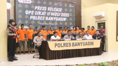 MEDIABBC.ci.id – Banyuasin – Polres Banyuasin berhasil mengungkap sejumlah kasus kejahatan dalam Operasi Sikat II Musi 2025 yang berlangsung selama 15 hari, dari 30 Oktober hingga 13 November 2025.