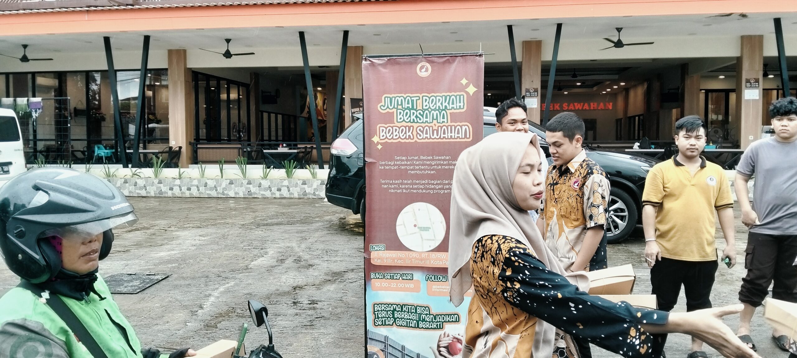Program tersebut kembali dilaksanakan pada Jumat (9/1/2026) di outlet Bebek Sawahan, Jalan Rajawali No. 1090, Kecamatan Ilir Timur III, Palembang. Manajemen menyiapkan sedikitnya 40 kotak makanan setiap Jumat sebagai bagian dari komitmen sosial perusahaan sekaligus penguatan citra merek di tingkat lokal.