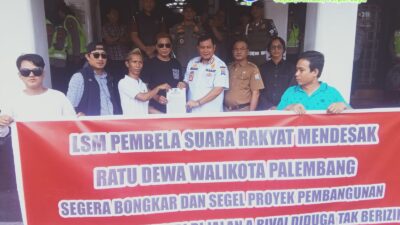MEDIABBC.co.id, Palembang– Puluhan massa dari Lembaga Swadaya Masyarakat (LSM) Pembela Suara Rakyat (PSR) Sumatera Selatan menggelar aksi demonstrasi di depan Kantor Pemerintah Kota Palembang. Aksi ini digelar untuk menyampaikan aspirasi dan mendesak Wali Kota Palembang, Drs. Ratu Dewa, agar segera menindak dugaan pelanggaran perizinan pembangunan gedung milik PT Bank Mandiri di Jalan A. Rivai. Dalam […]