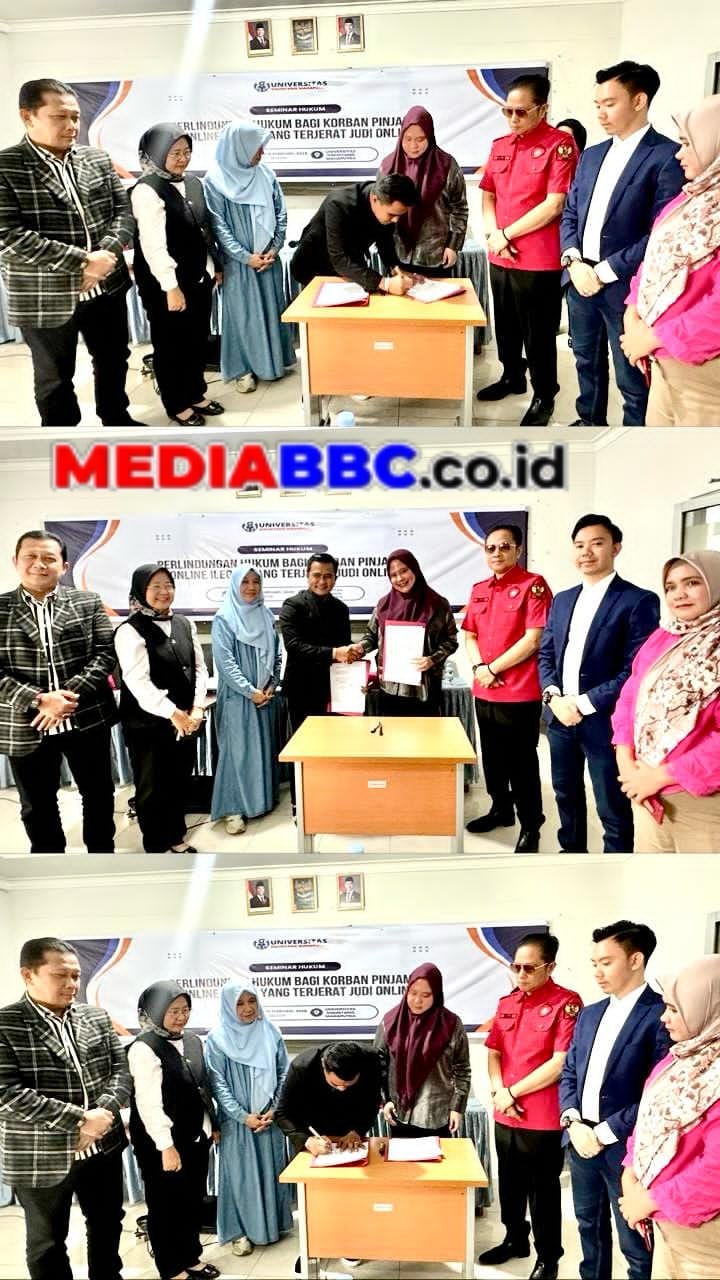 MEDIABBC.co.id, Palembang – Isu pinjaman online (pinjol) ilegal dan judi online kian mengkhawatirkan. Menjawab kondisi itu, Universitas Siguntang Mahaputra (UNISIGMA) Palembang resmi menggandeng DPC IKADIN Palembang melalui penandatanganan Nota Kesepahaman (MoU) yang dirangkaikan dengan Seminar Hukum bertema “Perlindungan Hukum Korban Pinjol Ilegal yang Terjerat Judi Online.” Senin,(16/02/2026).